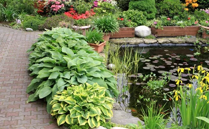 Сорти з листям із чітко окресленими прожилками чудово виглядають на краю садового ставка.