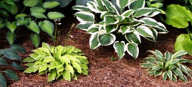 - Шишки, голки. При вирощуванні хости серед хвойних, цей натуральний та дешевий матеріал доповнює дизайн саду.