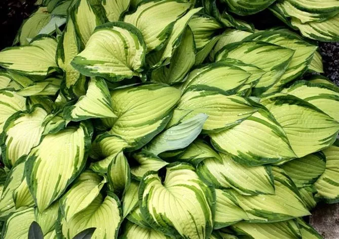 Листя хост мають різні розміри, форму та незвичайне різноманіття забарвлення.