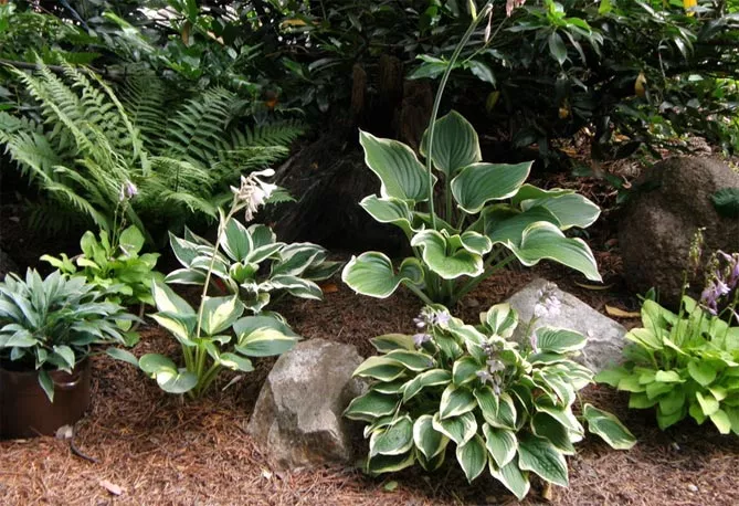 Сорти хости відрізняються за формою, розміром, забарвленням листя. Завдяки різнокольоровим сортам із яскравим або строкатим листям можна прикрасити будь-який затінений куточок саду.