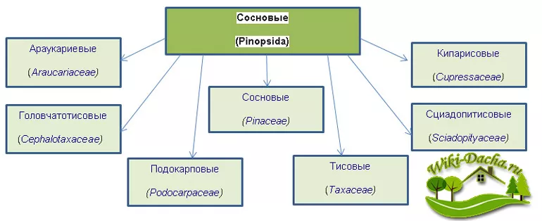 Систематика хвойних пород постійно обговорюється, тому існує кілька варіантів класифікації Pinopsida. Одна класифікація передбачає існування таких типів (кластерів): Cycadophyta, Ginkgophyta, Gnetophyta, Magnoliophyta, Pinofyta.