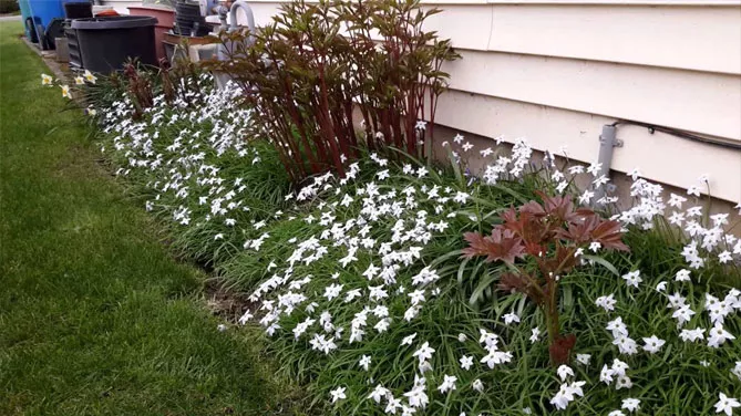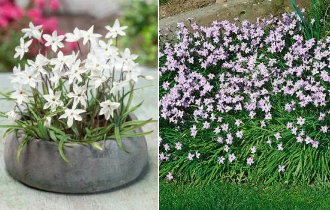 Висаджені у великій кількості іфейони утворюють квітучі килими синього, білого, рожевувато-лілового кольору разом з іншими весняними цибулинами: