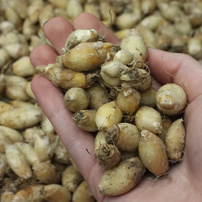 - Акуратно відокремте цибулини від материнської вручну або невеликим ножем.