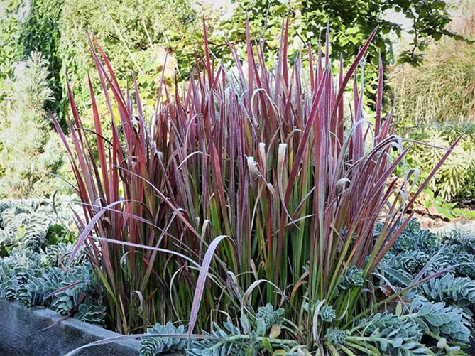 - Листя – червонувате, вузьке, довге, з гострими краями та кінчиком. Листя, яке робить траву унікальною на тлі інших популярних декоративних трав.