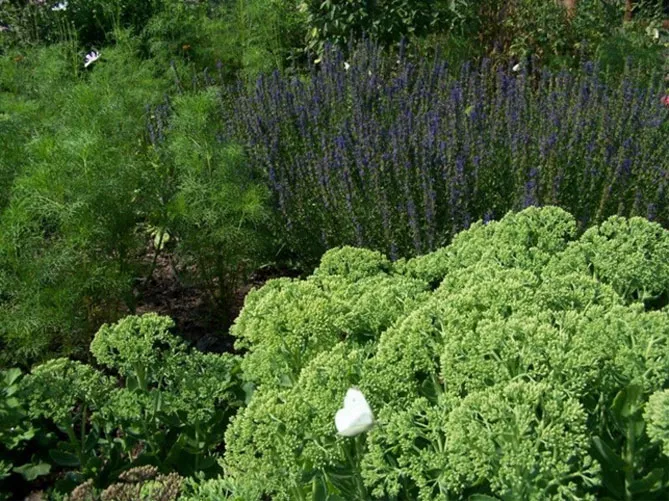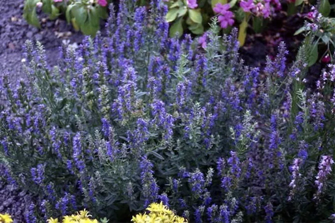 Крихітні квітки ісопу сапфірово-фіолетового забарвлення приємно контрастують з темно-зеленим листям. Рослина гарно виглядає на клумбі з багаторічниками, наприклад, у поєднанні з котячою м’ятою або вузьколистою лавандою. Його також можна використовувати як невисоку живопліт.