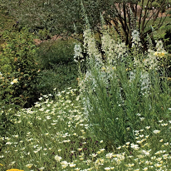 Так можна отримати мальовничий сад. Скористайтеся можливістю пограти з формами, наприклад, створивши контраст між прямолінійними елементами та парячими окремо стоячими рослинами. Насолоджуйтесь білим графічним цвітінням агапантуса ‘Polar Ice’. Також можете додати рослини з сірою, строкатою, білою листкою.