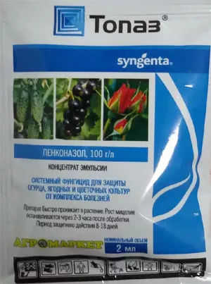 Для порічки: чорної, червоної, білої (проти американської борошнистої роси) – можна використовувати Топаз в разовій дозі від 5 мл на сотку до 2 разів у сезон в період від початку розвитку суцвіття до кінця вегетації, тобто до фази, коли все листя опало. Строк очікування для топазу на порічці та аґрусі становить 3 тижні.