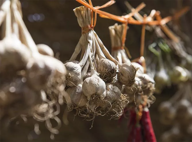 На замітку. Якщо у рослин після збору залишилася міцна ботва, рекомендують сплести косичку з часнику та прикрасити її декоративними квітами. Косиці вішають на кухні подалі від плити та води, використовують за потреби, зрізаючи головки з косиці. Подібний природний декор прикрашає інтер'єр, дозволяючи без зусиль дістати потрібну кількість ароматної спеції.