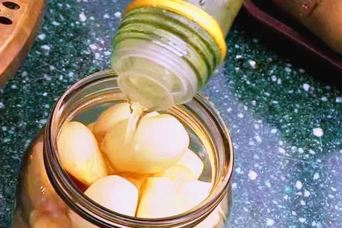 Окремі очищені скибочки, поміщені у масло (оливкове, соняшникове), зберігаються 4 — 8 тижнів. Додатковий бонус – масло набуває насиченого аромату і підходить для салатної заправки.