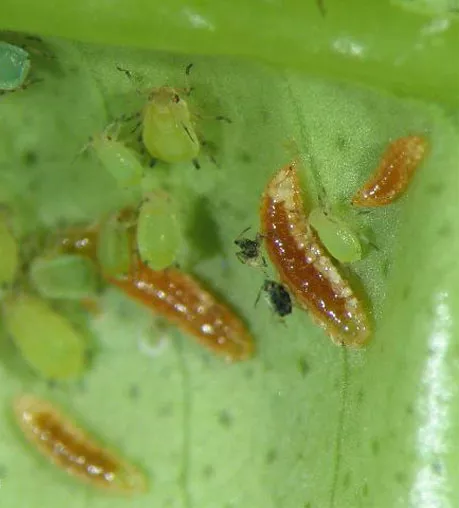 - Галлиця афідіміза – личинки живляться попелицею. Самиці галлиці відкладають яйця поруч із колонією цих шкідливих комах.