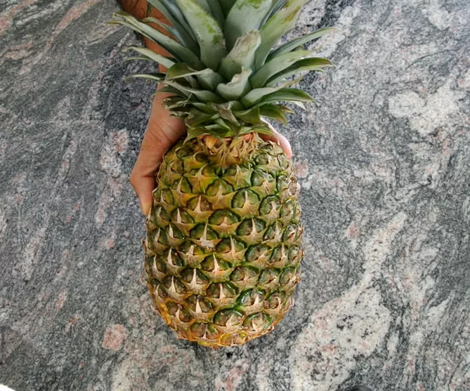 - Встановлюють ананас так, щоб опукла частина плода опинилася на імпровізованому підвищенні.