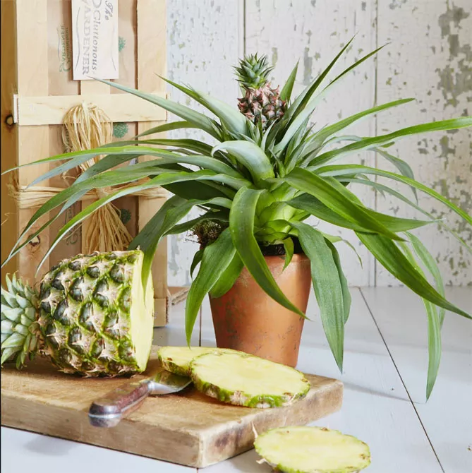Ананас – рід трав'янистих рослин із родини Бромелієві. Вирощують як сільськогосподарську культуру і вживають у їжу лише один вид – Великочубаний. Як і всі бромелієві, ананас може рости в кімнатних умовах, але навряд чи зацвіте і дасть плоди. Ця рослина досить екзотична. Перш ніж приступити до посадки, варто дізнатися, як у домашніх умовах із верхівки виростити ананас, у який грунт садити і як доглядати за рослиною.