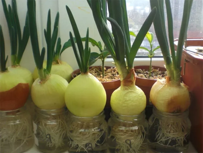 Щоб взимку посадити цибулю на зелень вдома, необов'язково потрібна наявність контейнерів із землею. Багато хто робить просто: тарою служить звичайна баночка з водою. Плюси методу:
