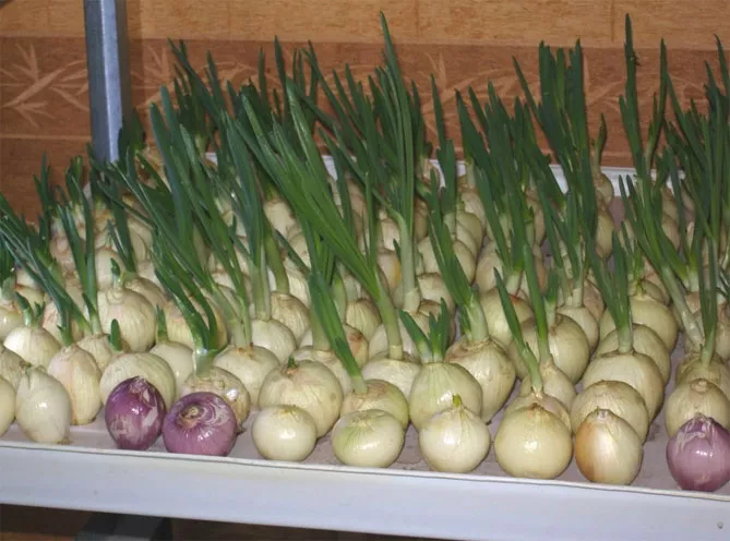 Для тих, хто любить у холодний зимовий час поласувати смачною зеленою цибулею, існують різні пристосування. Їх дії засновані на гідропонічному принципі: ємність заповнюється водою, у отвори вгорі кладуть цибулини, причому нижньою частиною вони не повинні контактувати з водою. Завдяки спеціальному компресору всередині лотка для вирощування утворюється вологий туман. Це дозволяє виключити ризик гниття коріння. На думку фахівців, при такому методі вирощування зеленої цибулі вдома на підвіконні перья ростуть набагато швидше, ніж при використанні інших способів.