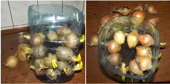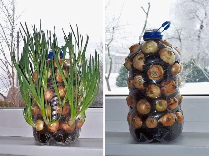 Дуже цікава ідея – виростити цибулю у 5-літровій пляшці з-під мінеральної води.