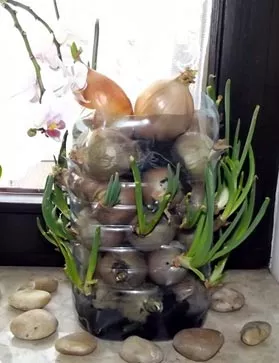 Правильне вирощування зеленої цибулі на воді