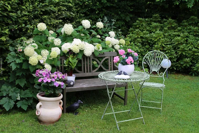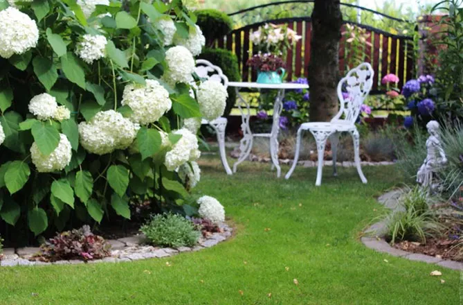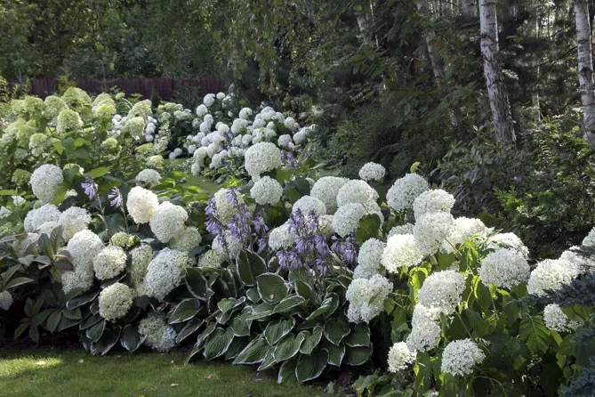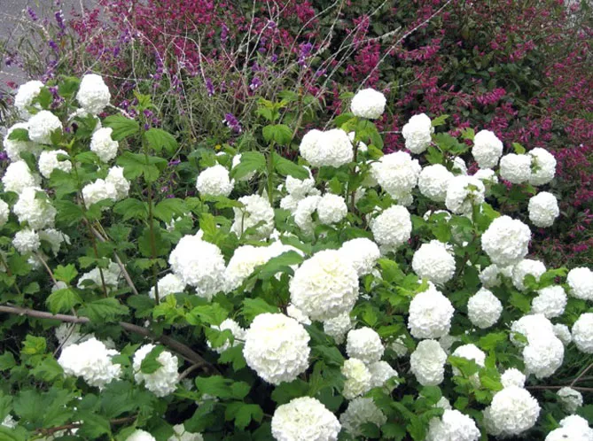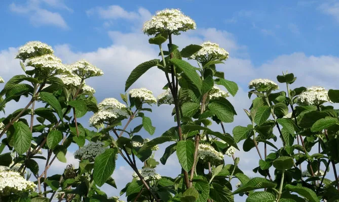 Для романтичного ефекту поєднуйте Viburnum lantana з іншими рослинами м'яких тонів: