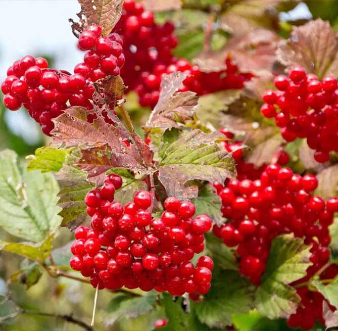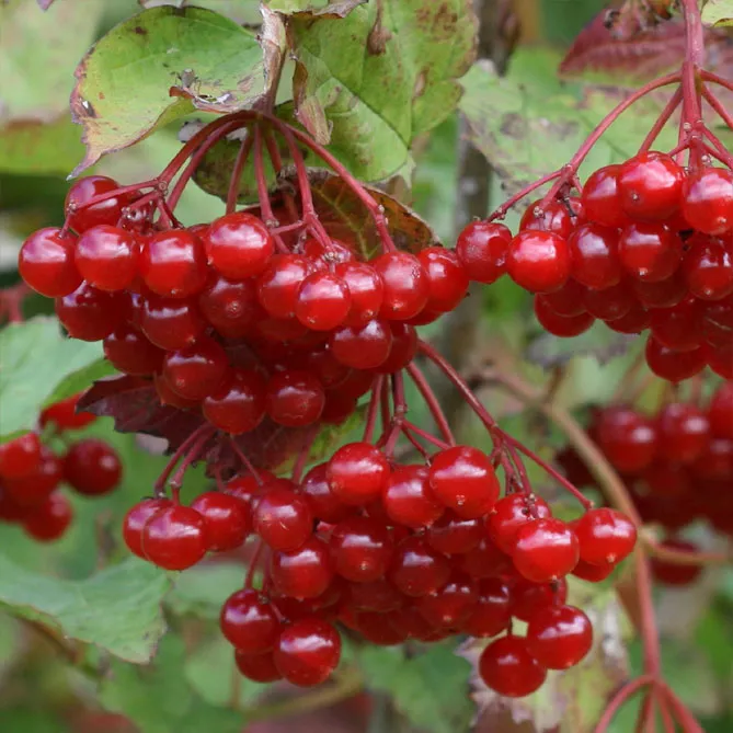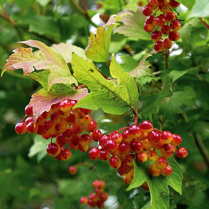 Після цвітіння калини прикрашаються декоративними ягодами. Зазвичай вони червоні або сині, а іноді чорніють при дозріванні. Вони привернуть птахів в сад! V. opulus ‘Xanthocarpum’ – сорт, який цінується за чудові яскраво-жовті ягоди. Щоб сприяти плодоношенню, згрупуйте кілька рослин одного виду разом, особливо якщо ви садите дводомну калину Давидову.