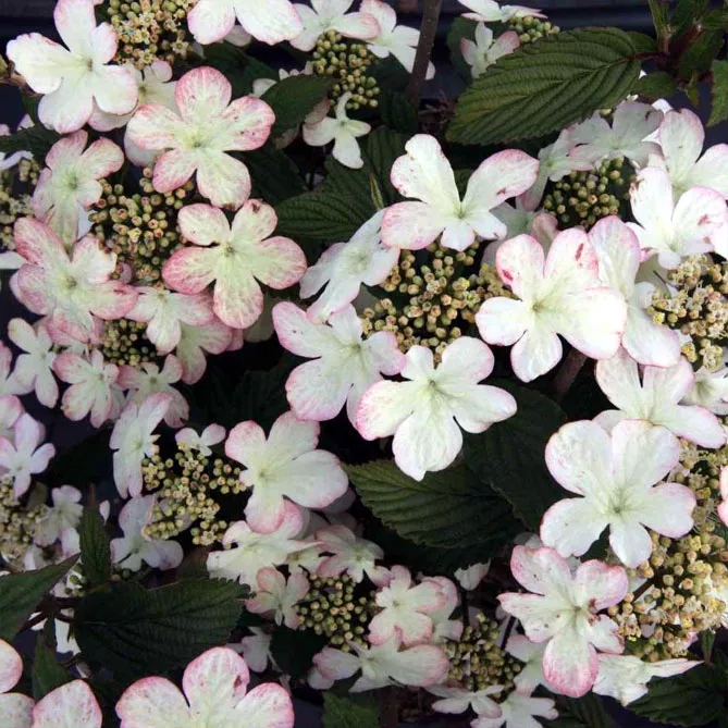 Калина Берквуда (Viburnum burkwoodii) цвіте з квітня по травень. Висота – 2,5 м. Весною Калина Берквуда з рожевих бутонів розпускає ароматні білі квіти. Листя глянсово-зелене, восени набуває червоних відтінків. Особливо стійка калина, вимагає дуже мало догляду!