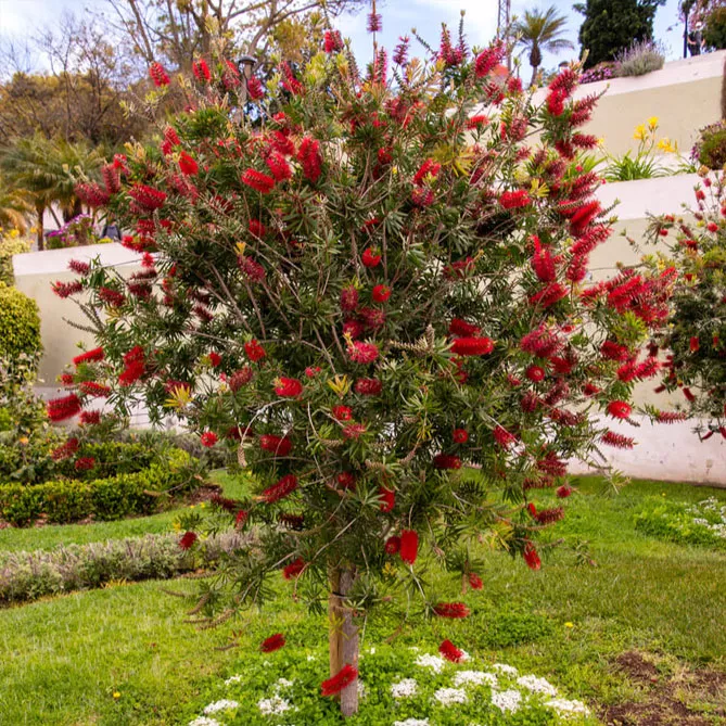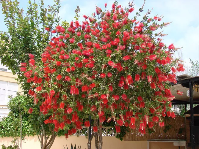 - Калістемон плетений (Callistemon viminalis) – з красивим силуетом фонтану.