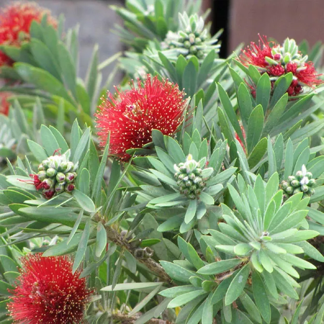 Калістемон гібридний Callistemon x laevis – утворює чарівний кущ заввишки 1,8 м з розлогим габітусом, здатний цвісти кілька разів протягом сезону, якщо отримує достатньо вологи.