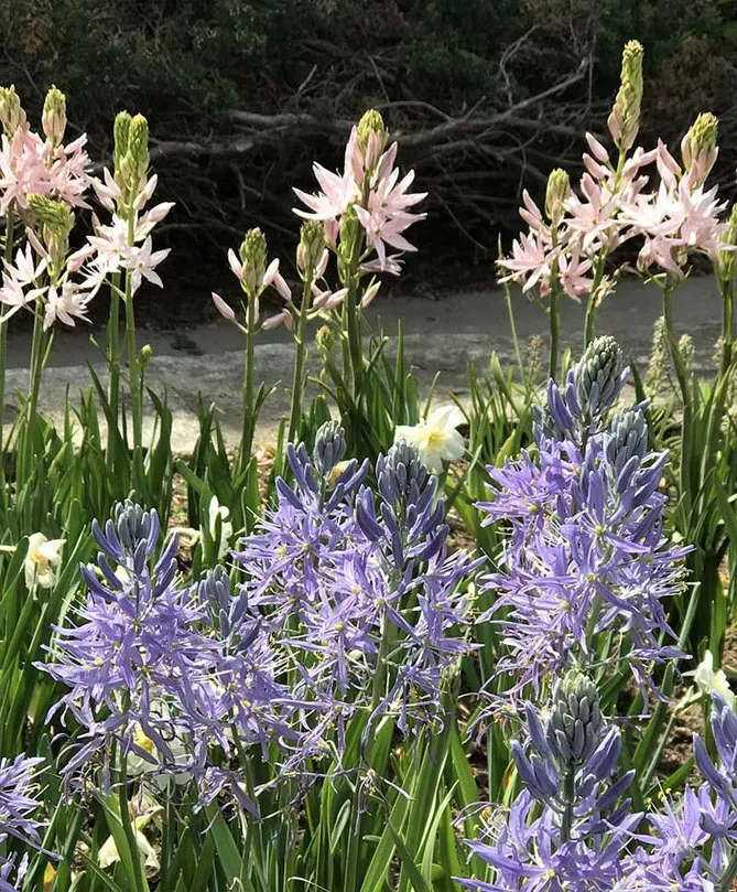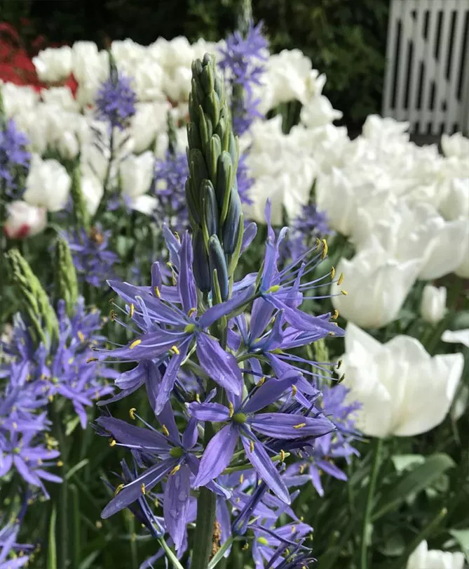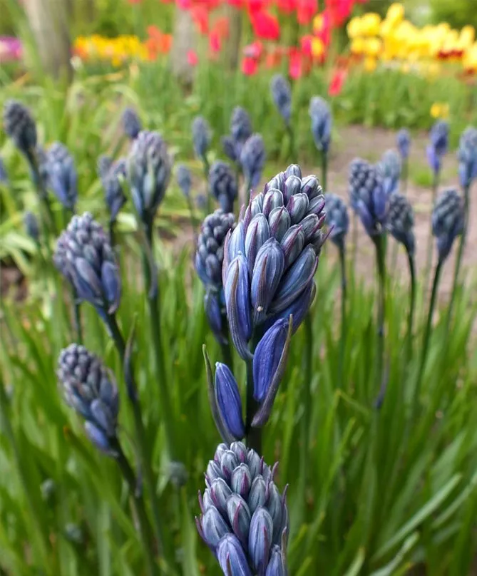 - На клумбах садіть камасії поряд з іншими весняними цибулинними квітами: тюльпанами, декоративною часником, рябчиками, нарцисами. Можливості безмежні і можуть змінюватися щороку відповідно до бажань.