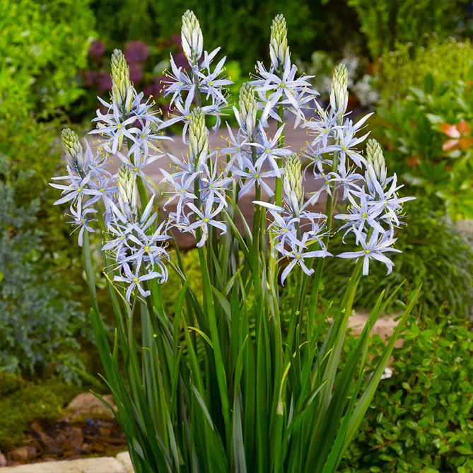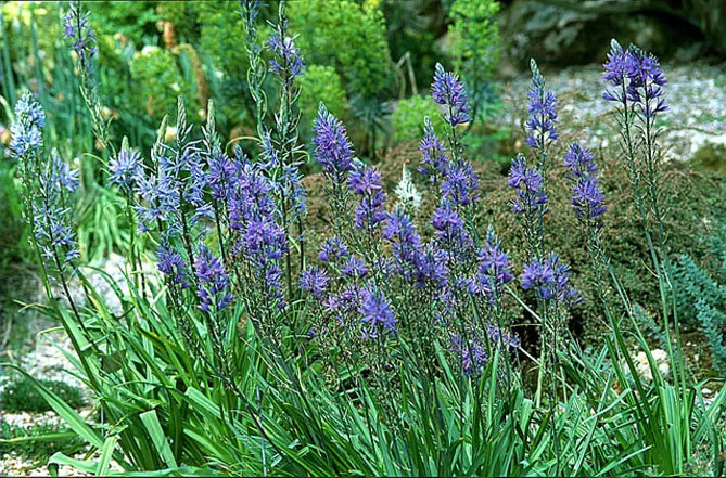 Один із найпривабливіших видів – Камасія їстівна чи квамаш (лат. Camassia quamash). Період цвітіння рослини: травень-червень. Висота з квітконосом – 60 см. Цей «індійський гіацинт» швидко колонізує простір і розпускає витончені колоски яскраво-блакитних квітів. Утворює чудовий квітучий луг.