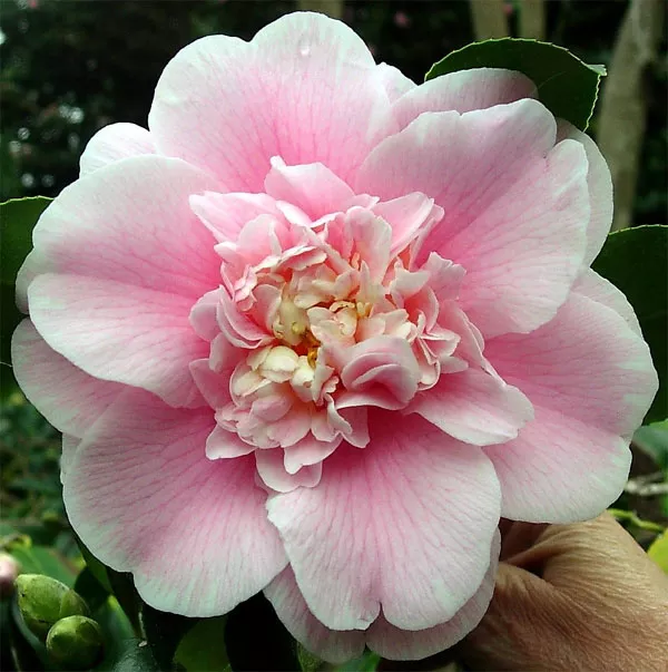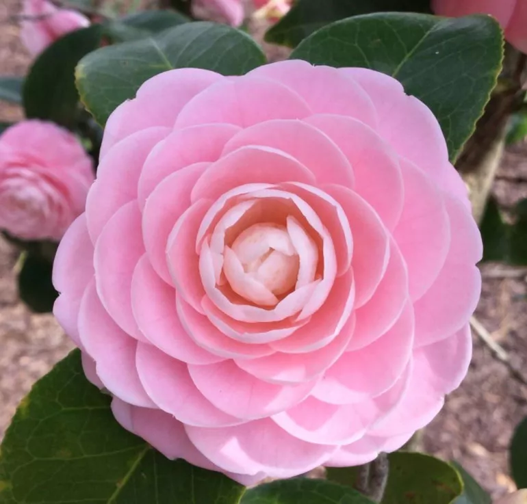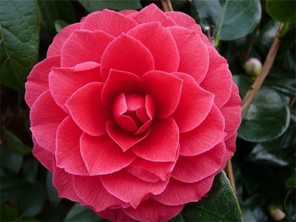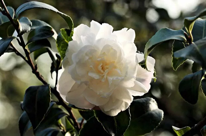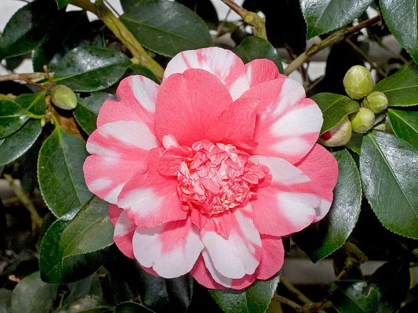 Камелія садова японська (Camellia japonica) – вічнозелений чагарник або дерево, досягає 1 метра в домашніх умовах і до 10 метрів в природних умовах у теплому кліматі. Молоді пагони світло-коричневі, старі пагони камелії деревовидні, коричневі, з відтінком пурпурного кольору.