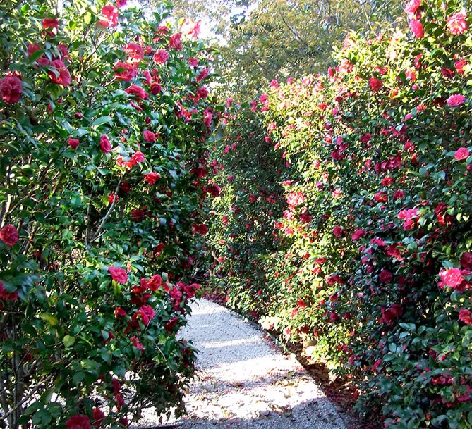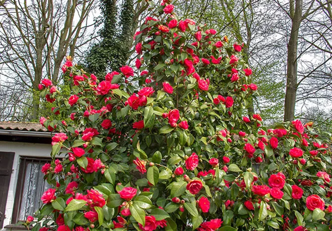Камелія – дуже декоративна рослина, яка відмінно виглядає як фон для газонів і елемент живої огорожі, хоча з її чутливістю до зимових умов слід рахувати.