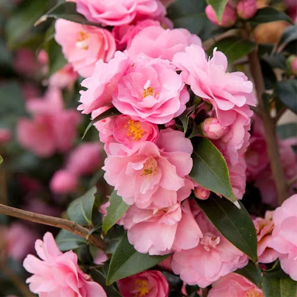 - «Леді Кемпбелл» Lady Cambell – один з небагатьох сортів камелії, що мають тонкий аромат. Квіти нагадують бегонії, махрові, рожеві з жовтими тичинками.