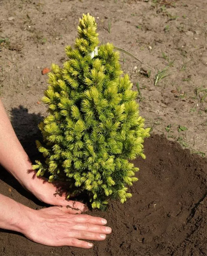 Ялину саджають на ту саму глибину, як саджанець ріс у горщику.