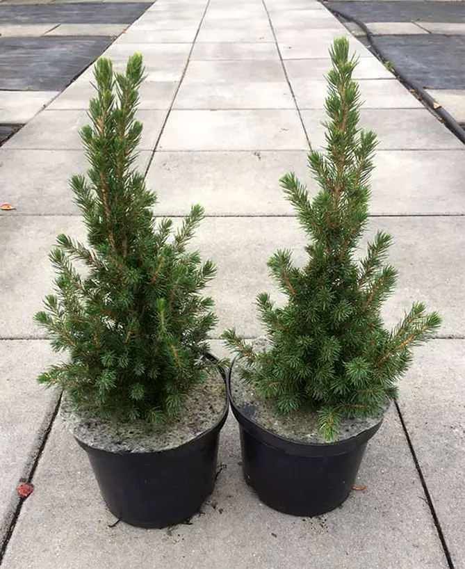 Наскільки близько можна посадити ялину «Коніка» від тротуару, щоб її коріння не підняли тротуарні плитки в майбутньому? Ялина Conica – досить повільно ростуче хвойне дерево з не дуже обширною кореневою системою. Однак через 20 років вона може вирости до висоти 2 метри. Для кореневого блоку ялини достатньо місця 50-80 см – на такій відстані можна посадити дерево від тротуару.