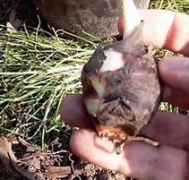 - Спочатку викопуємо всю рослину, потім відрізаємо стебель гострим ножем.