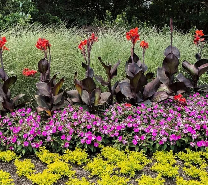 Зазвичай квіти висаджують у численних групах, щоб показати максимальну красу квітки. Канни добре виглядають у різних композиціях: