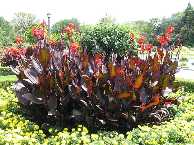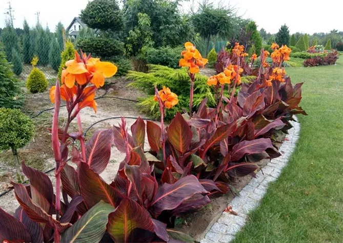 Канна садова (Canna x generalis) відома, як просто канна, характеризується яйцеподібно-ланцетними листками, розміщеними на жорстких, порожнистих стеблах, що закінчуються суцвіттям. Це надзвичайно оригінальна багаторічна рослина – що вирощується заради декоративних і екзотичних листків і яскравих квіток, що прикрашають сад з липня до перших заморозків.