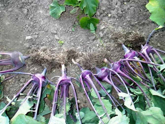До збирання ранніх сортів кольрабі приступають через 2 місяці після висадки розсади. Діаметр стеблеплідів має становити від 10 см.