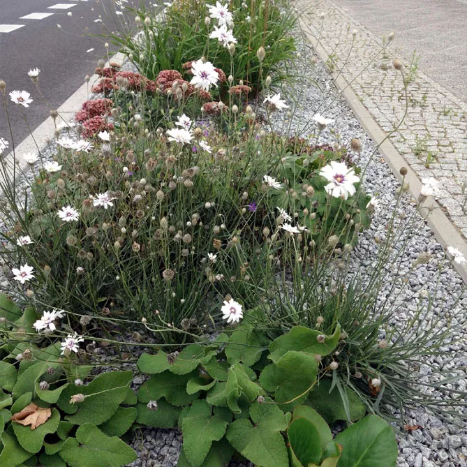 Ця пристосовність дозволяє комбінувати її тривале і красиве літнє цвітіння у відтінках синього або білого з багатьма рослинами – компаньйонами.