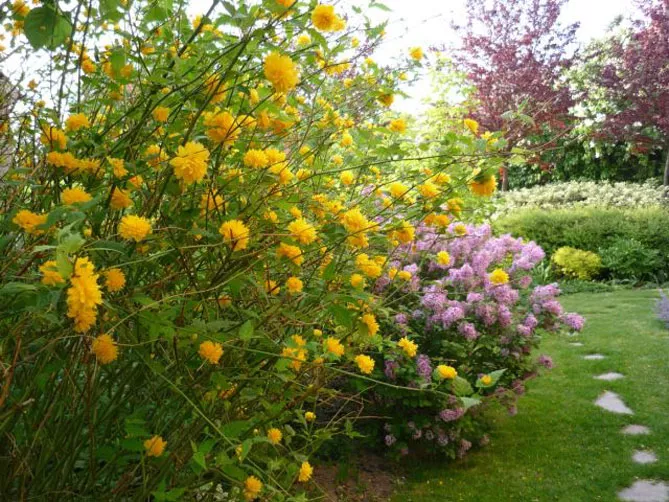 Сонячне цвітіння керії можна супроводжувати одночасним цвітінням наступних рослин: