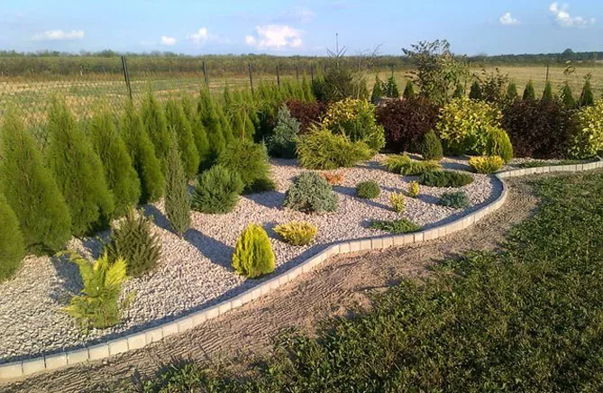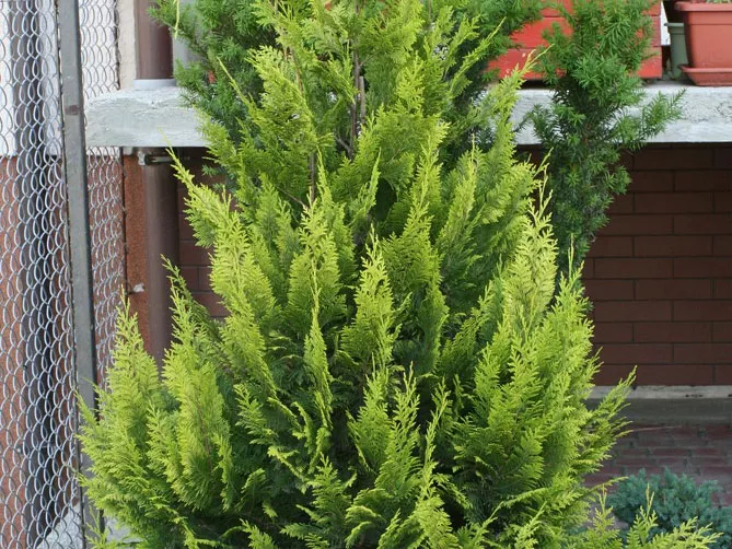 - горохоплодним кипарисовиком «Філіфера ауреа» Filifera Aurea золотистого кольору;