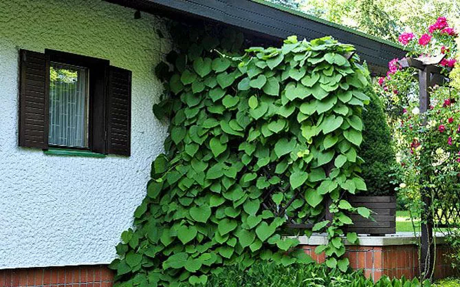 Ліану цінують за здатність швидко покривати стіни, перголи або будь-яку доступну їй опору. Вона дивує своєю ефектною пишною листкою рішучо екзотичного вигляду, яка восени набуває чудових відтінків. Ця буйна листва ховає влітку дивовижні квіти сифоноподібної форми красивого темно-фіолетового кольору з кремовими цятками.
