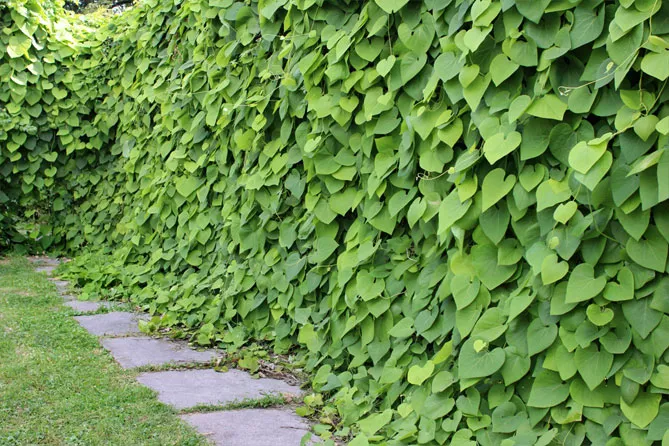 - Для покриття стіни або паркану передбачте міцну і досить велику опору (решітку, троси). Потрібно направляти стебла, поки вони починають ріст, щоб допомогти їм добре закріпитися.