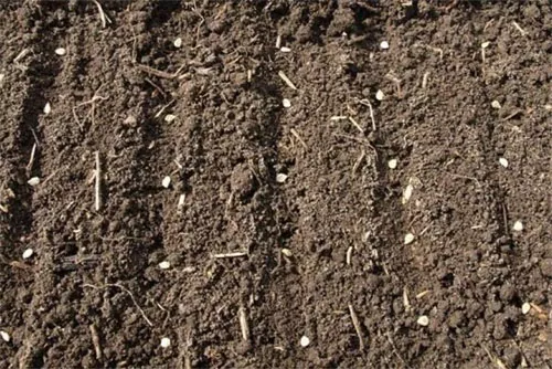 - На поверхні земляної суміші роблять неглибокі борозенки на відстані близько 4-5 см;