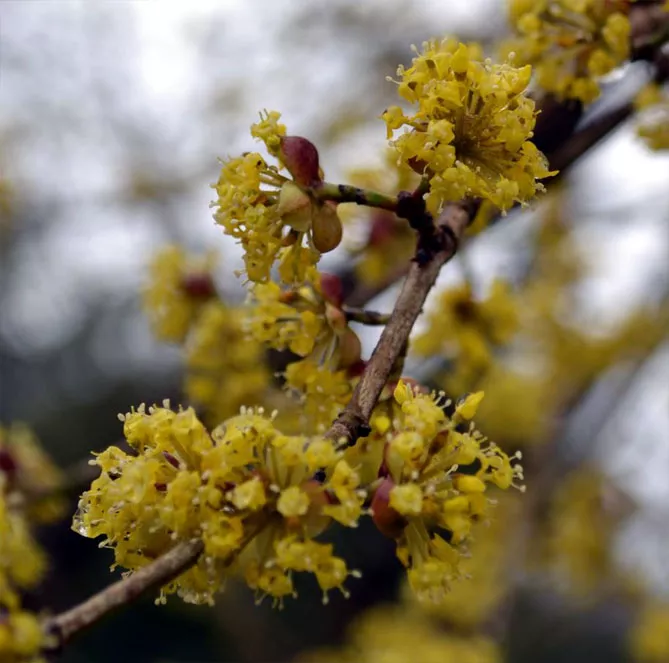 Коли цвіте кизил? Найчастіше кизил цвіте навесні, до розвитку листя (на межі березня-квітня залежно від температури повітря).