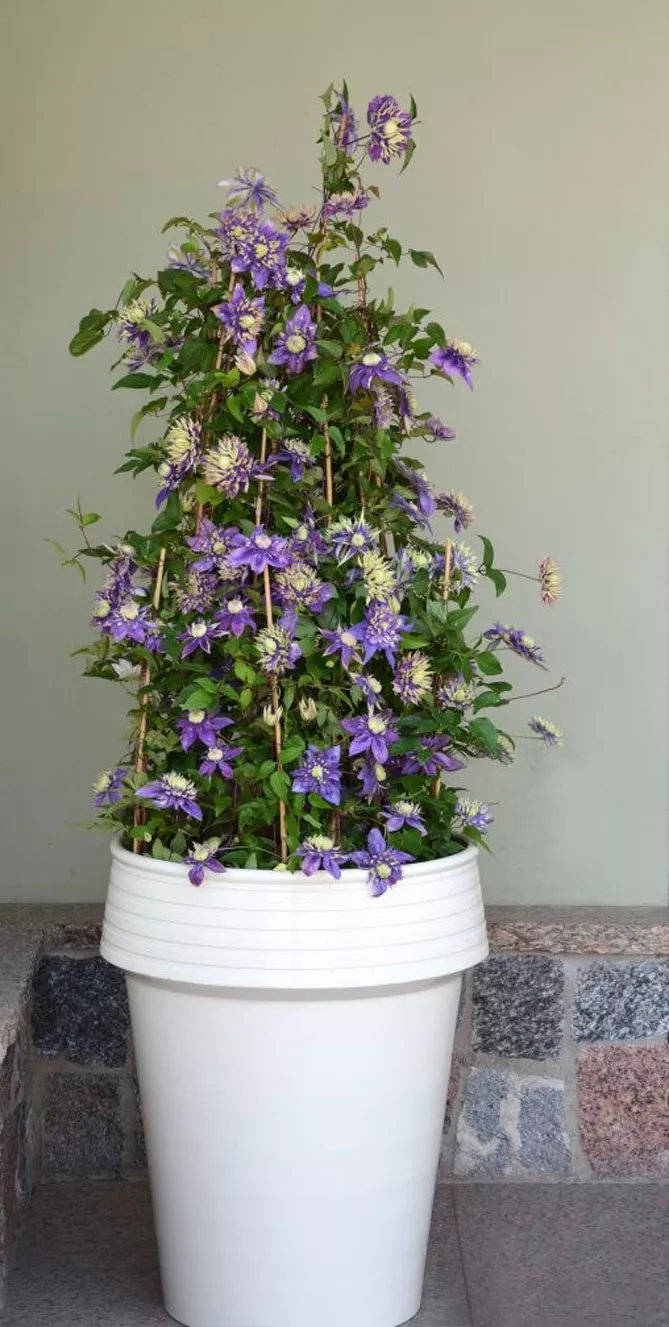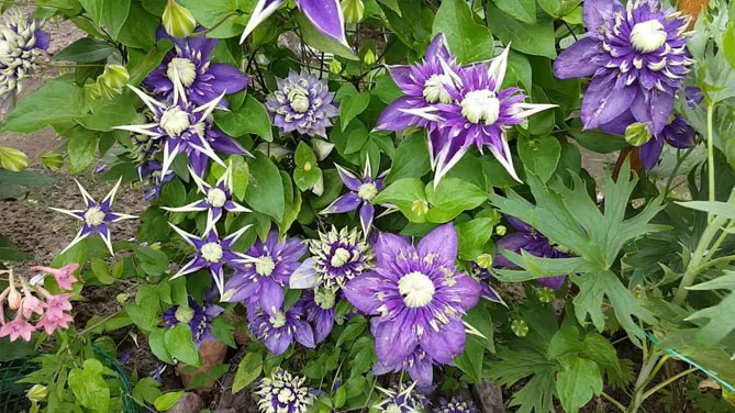 Фото. Клематис великоквітковий «Тайга» в ландшафтному дизайні