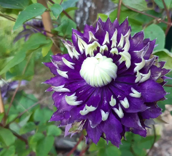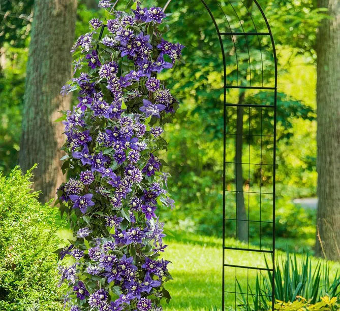 Ця чудова виюча рослина з великими махровими квітами зі строкатим забарвленням, рясним цвітінням, прикрашає стіни, перголи, балкони та тераси. Скористайтеся простотою вирощування клематиса «Тайга», щоб надати саду романтичного та богемного вигляду.