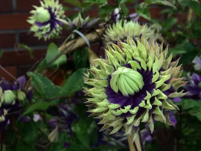 Цей клематис чіпляється за опору або за рослину-господаря за допомогою виючих стебел, снабжених черешками, перетвореними на вусы.
