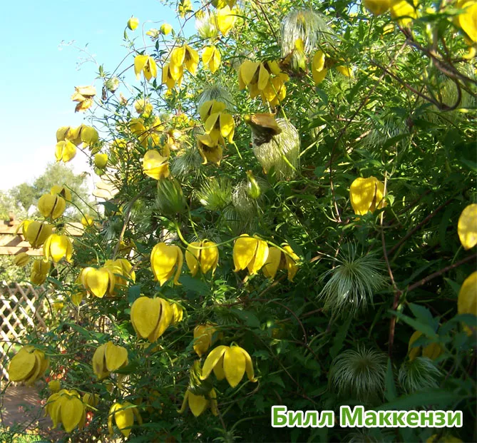 Цікавий танугцький клематис (Clematis tangutica), що відрізняється звисаючими поодинокими жовтими квітами, які з'являються на тонких стеблах. Тангуцький ломонос має перевагу – його плоди дуже декоративні – пухнасті, шовковисті.