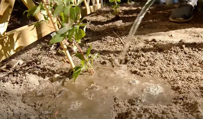 Небезпечна для клематисів нестача води під час росту. Пересохлі рослини погано ростуть, частіше хворіють (в тому числі борошнистою росою, в'януть), гірше переносять морозний період. Тому з весни до осені їх слід систематично поливати, щоб земля постійно була злегка вологою.