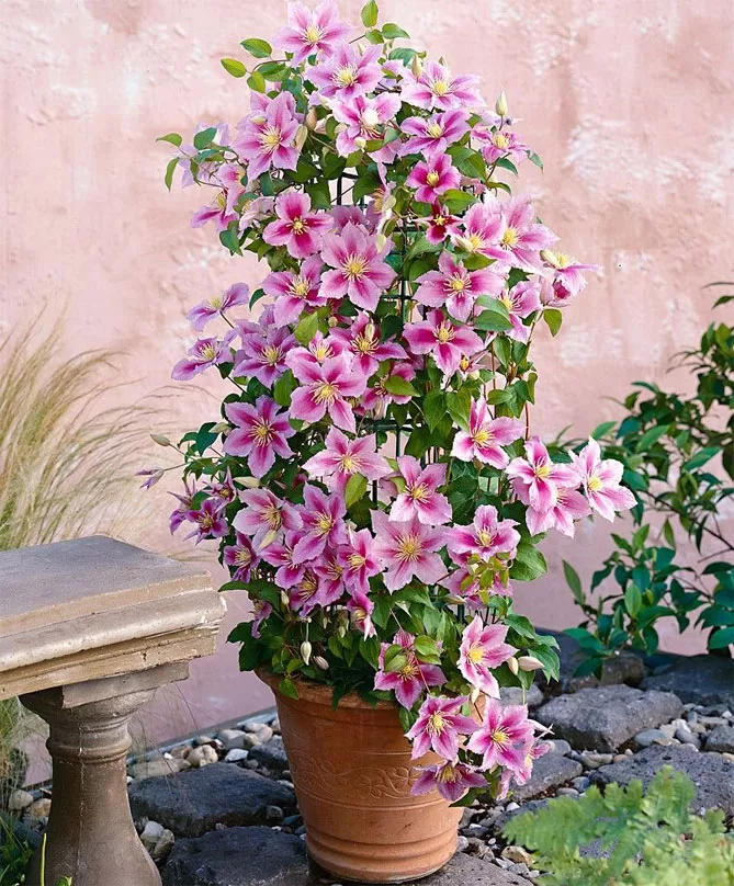 Для вирощування на балконі та терасі можна рекомендувати карликові сорти клематиса з тривалим періодом цвітіння.