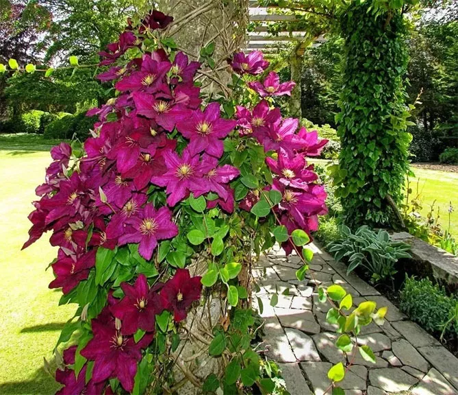 - оскільки ломонос відмінно переносить затінення, його можна посадити під деревами, опорою стануть їхні стовбури або декоративні кущі. Така комбінація представляє дивовижне видовище.